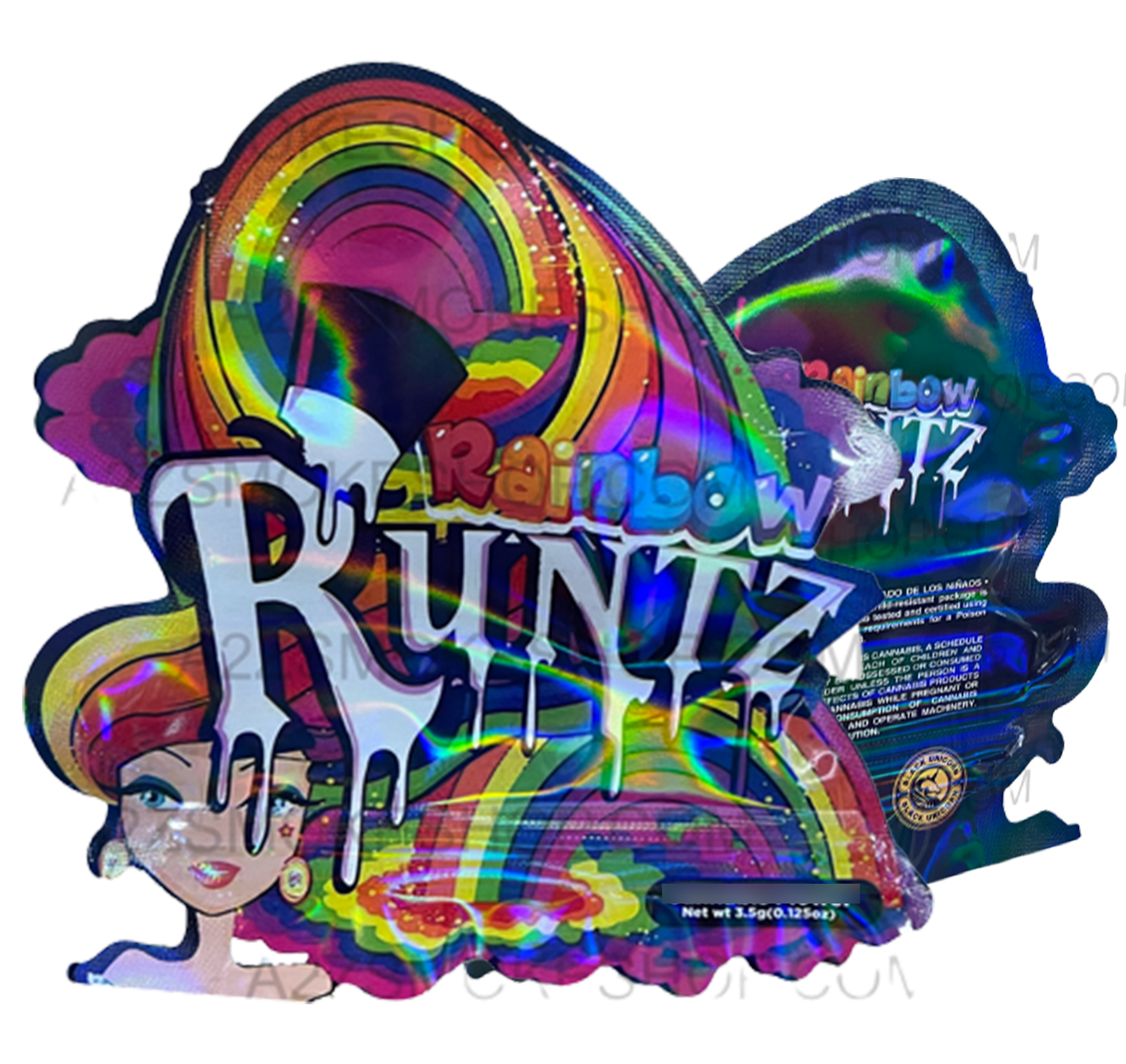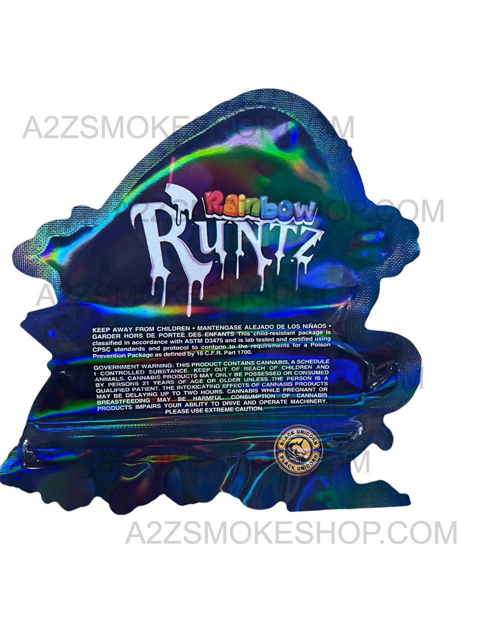 Black Unicorn Rainbow Runtz cut out Holographic Mylar bag 3.5g