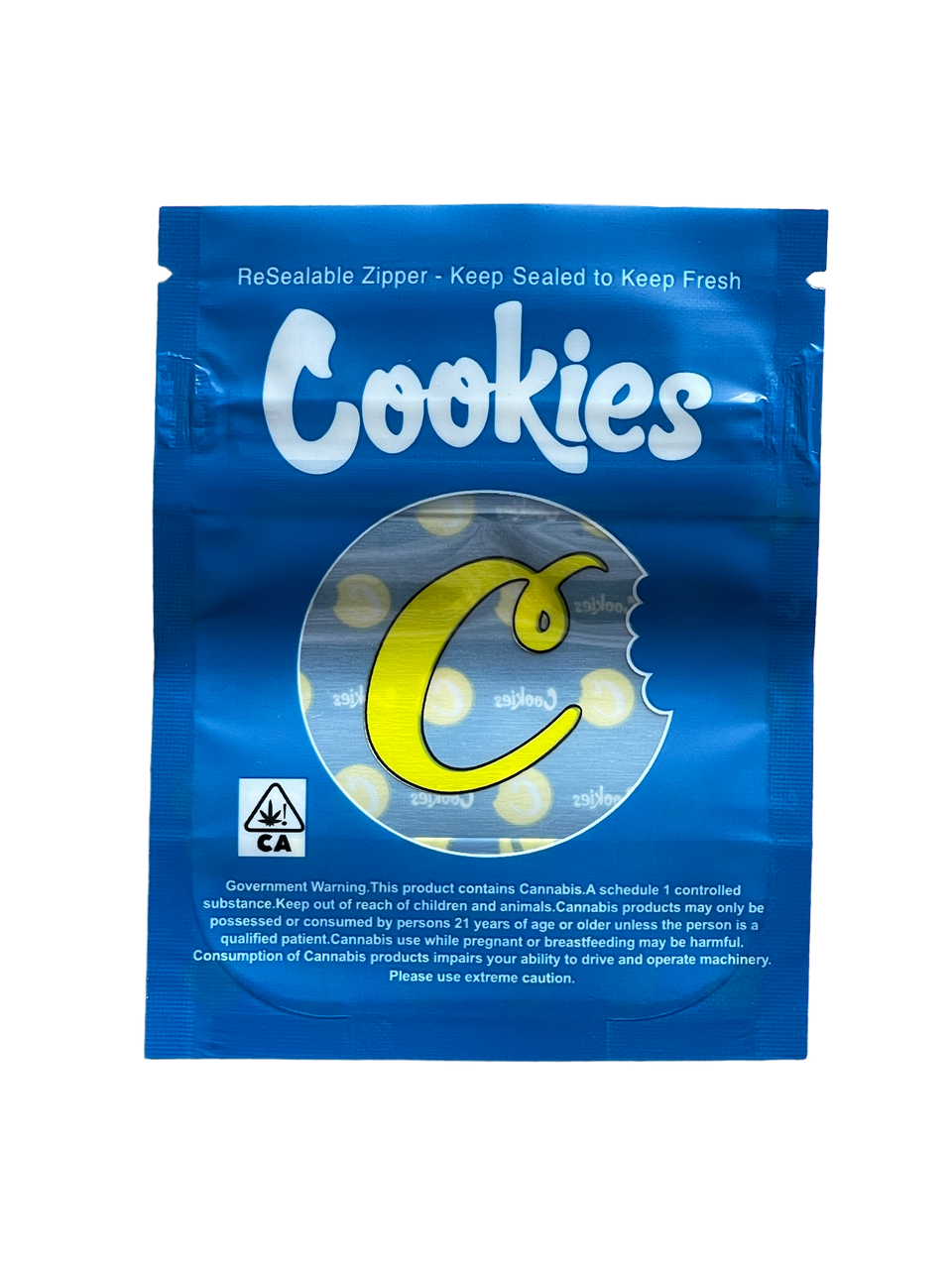 Cookies Blue with Window Mylar Bags 3.5 Grams Smell Proof Resealable Bags w/ Holographic Authenticity Stickers